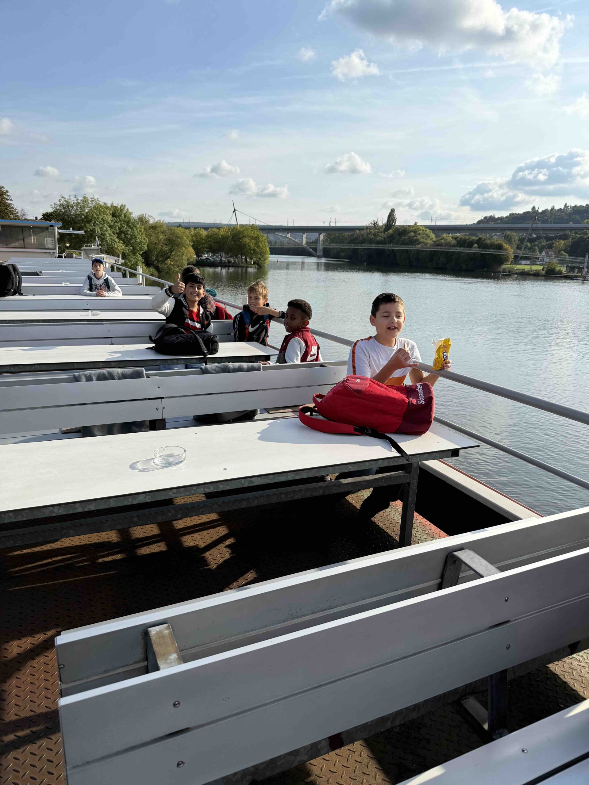 Da der vorgesehene Bus leider nicht planmäßig kam, mussten wir 5 km nach Veithöchsheim zurückzulaufen, um das Schiff nach Würzburg rechtzeitig zu erreichen. Nach anfänglichem „Nörgeln“ liefen wir dennoch recht entspannt zurück. Die Rückfahrt mit dem Schiff war ein echtes „Highlight“ – bei herrlichem Sonnenschein genossen wir die Aussicht. In Würzburg angekommen, durften sich die Kinder zur Belohnung zwei Kugeln Eis kaufen, denn schließlich haben sie sich das Geld für die Busfahrt gespart!
