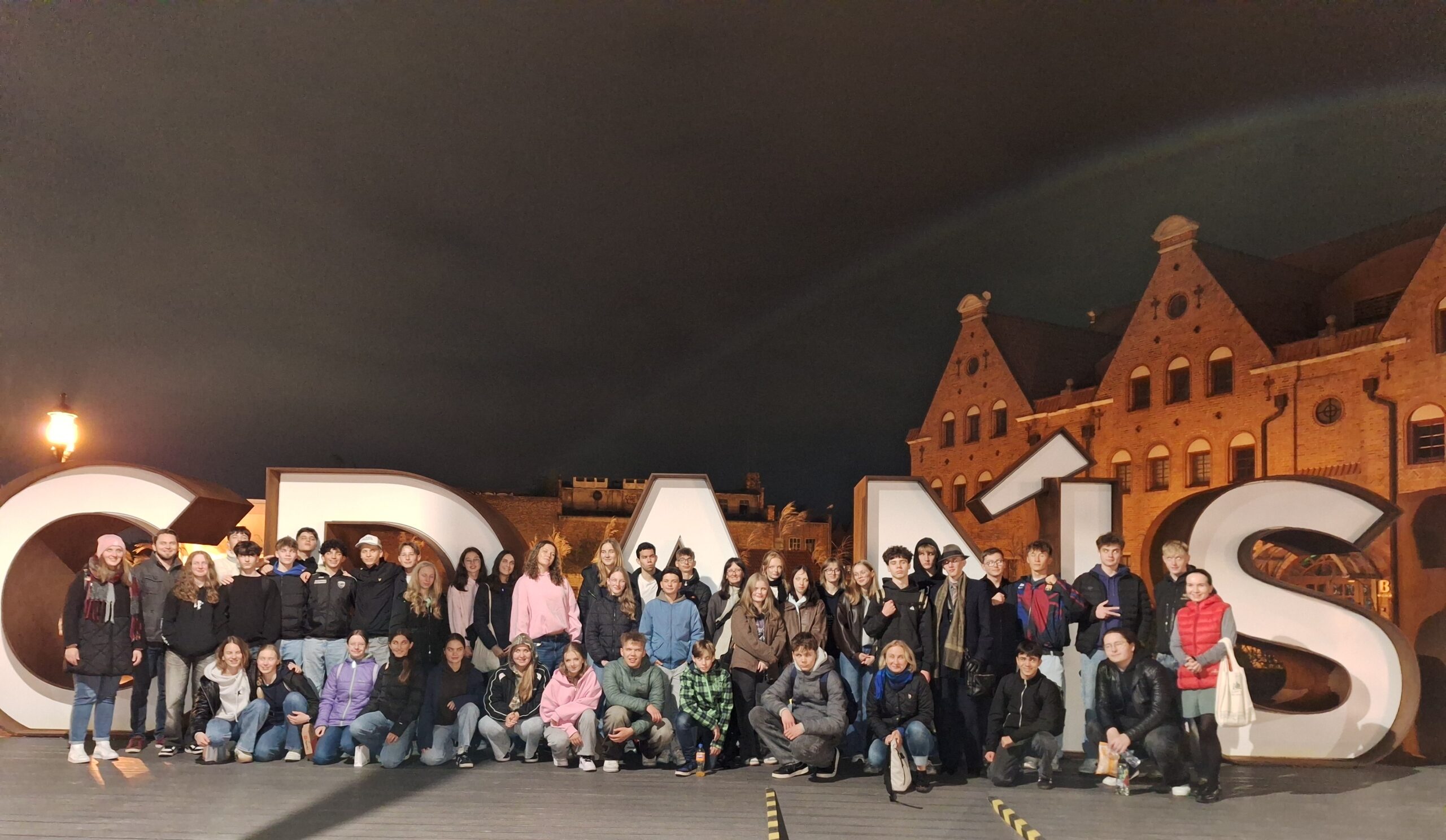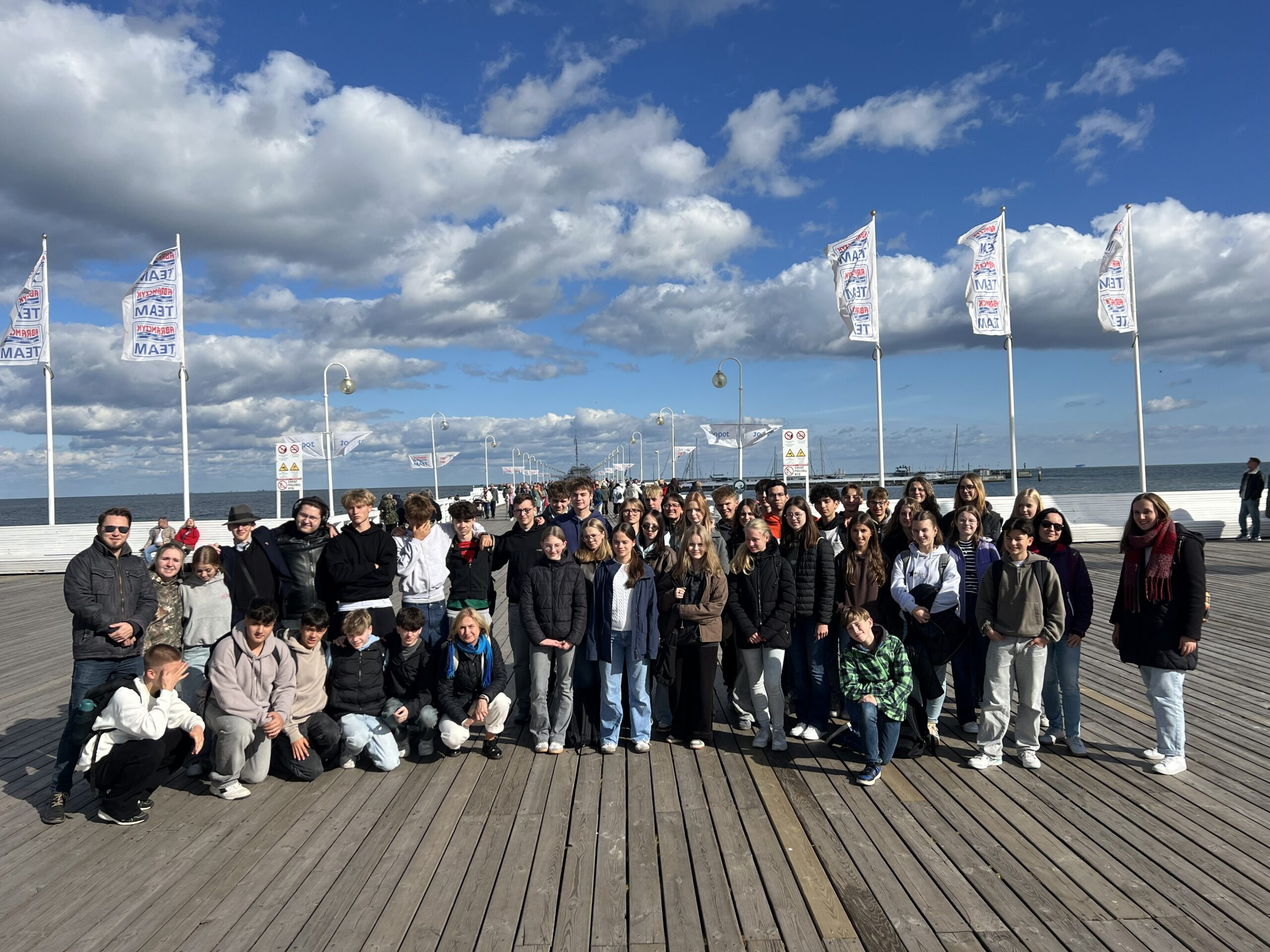 Im Rahmen der Schulpartnerschaft mit dem II.Lyzeum in Waldenburg (Niederschlesien) fuhren wir, die Klasse 9b, zusammen mit unserer Klassenlehrerin Frau Gilbert und Herrn Kubisch als Begleitung vom 28.09. bis zum 03.10. mit dem Zug nach Danzig, um dort mit polnischen Austauschschülern an einem Workshop zum Thema „Solidarisches Europa“ teilzunehmen. Bei dieser deutsch-polnischen Jugendbegegnung waren neben unserer Klasse noch 17 polnische Schülerinnen und Schüler im Alter von 14 bis 18 Jahren sowie deren Lehrerinnen Frau Kmiec und Frau Zalobka dabei. Den Workshop leiteten Frau Kaleczyc und Herr Garsta.