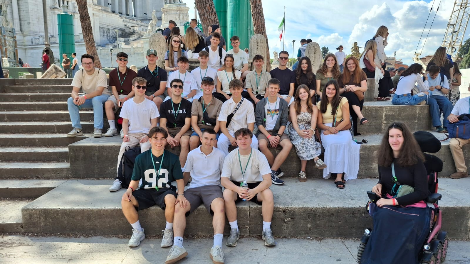 Viele Menschen sind der Einladung des Papstes gefolgt, um in Rom das Jubiläums Jahr 2025 zu feiern. Auch wir kamen mit zwei Tutorenkursen unserer Schule in der Woche vor den Herbstferien als „Pilger der Hoffnung“ nach Rom und besuchten in der ewigen Stadt die großen Kathedralen wie den Petersdom und Santa Maria Maggiore und durchschritten jeweils die Porta Santa. Rom ist quasi ein gigantisches Freilichtmuseum der antiken Geschichte und der Kunst der Renaissance. Hier hat man Gelegenheit, das religiöse, historische und kulturelle Erbe Europas an einem einzigen Ort unmittelbar zu erfahren. Und daher standen auf dem Programm nicht nur die vielen großen und kleinen Basiliken, sondern auch die herausragenden Museen Roms, wie z.B. die Vatikanischen Museen mit der Sixtinischen Kapelle, das Forum Romanum mit dem Colosseum, der Trevibrunnen und die Spanische Treppe, das Pantheon und das pulsierende Nachtleben in Trastevere.