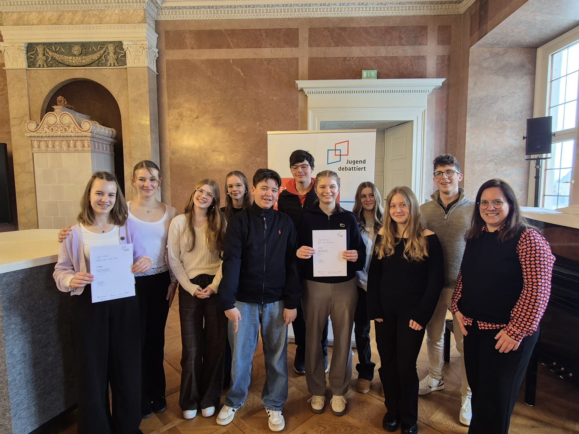 Ein funktionierendes demokratisches System lebt vom Austausch und dem fairen Streitgespräch. Unter dem passenden Motto „Demokratie sucht Mitstreiter!“ fand am Montag, dem 09.02., das diesjährige Regionalfinale des bundesweiten Wettbewerbs Jugend debattiert in Fulda statt. Im festlichen Ambiente des Marmorsaals im Stadtschloss stellten Schülerinnen und Schüler der Sekundarstufen I und II von sieben teilnehmenden Schulen eindrucksvoll unter Beweis, dass sie die Kunst des Redewettstreits beherrschen.