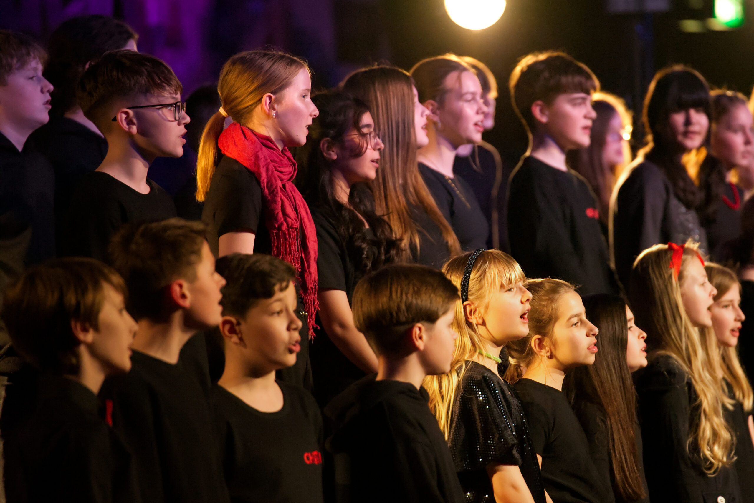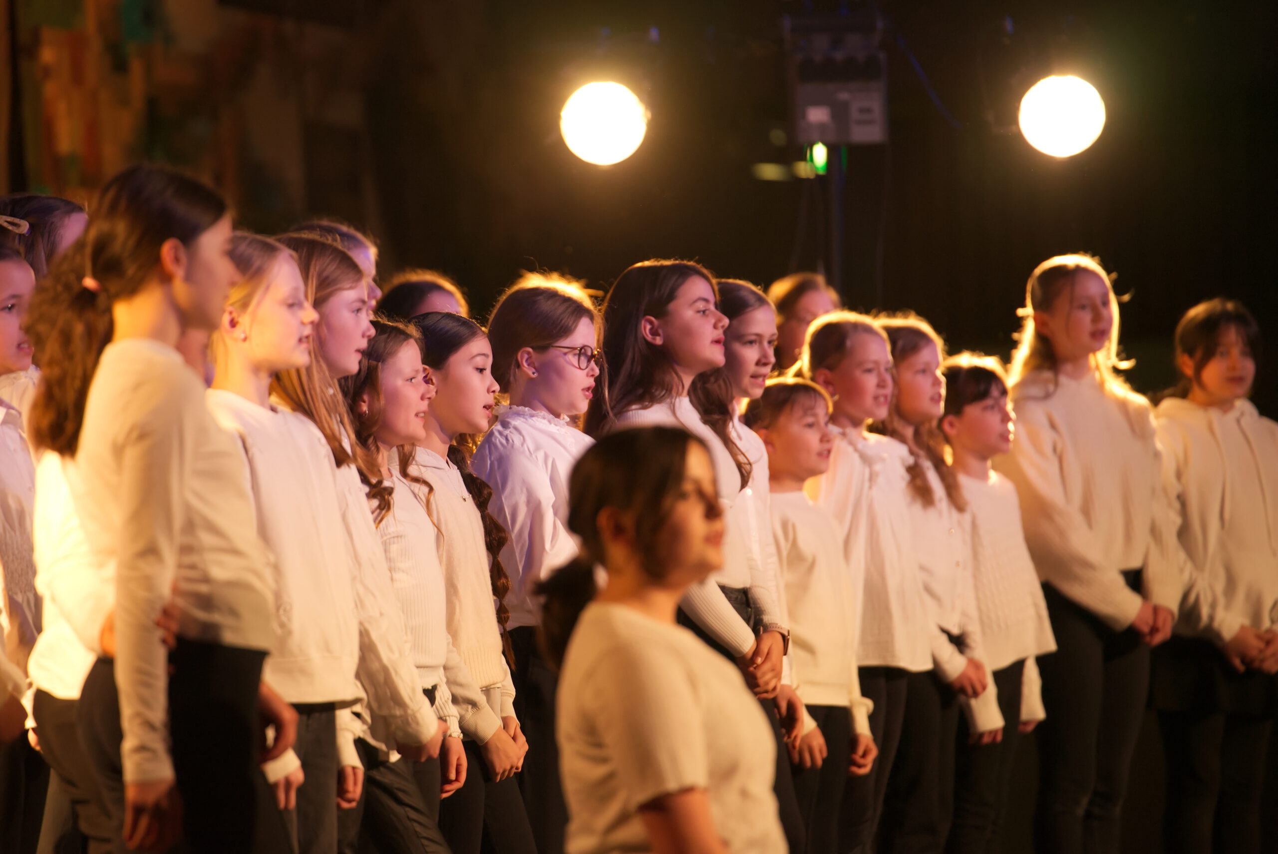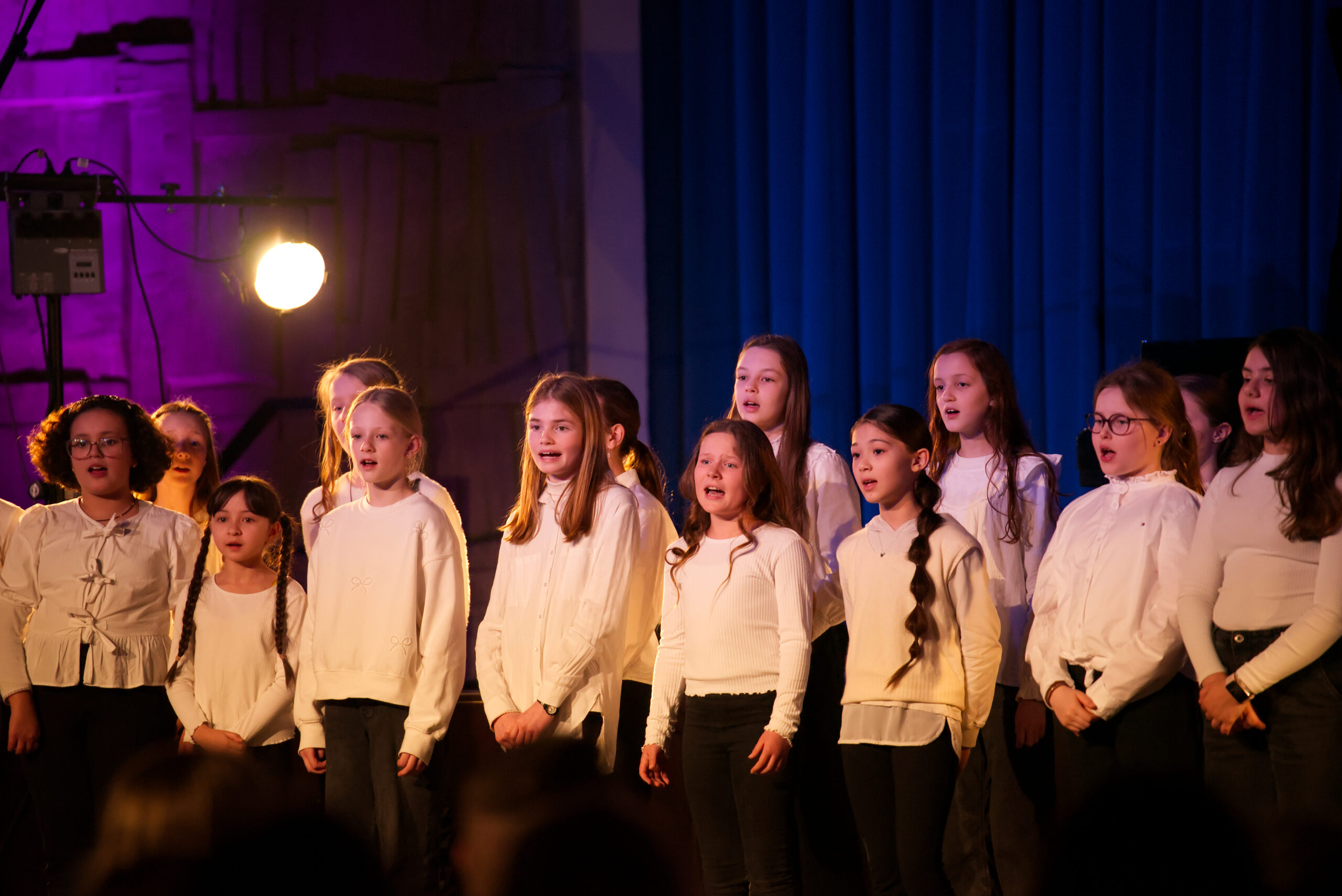Hierfür durften wir den Unterstufenchor der Marienschule unter der Leitung von Sabrina Huppmann begrüßen. Unter dem Motto mit- statt nebeneinander lernten sich die über 90 Sängerinnen und Sängern aus den Klassenstufen fünf bis sieben bereits vor wenigen Wochen bei einem gemeinsamen Probetag kennen und durften am Dienstag, dem 03.03., gemeinsam auf der Bühne stehen.