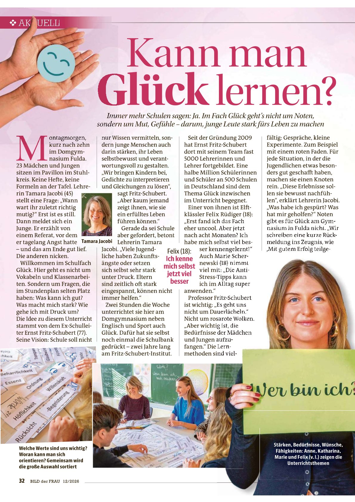 In der Presse taucht das Thema auch immer mal wieder auf – so zuletzt in der “Bild der Frau” (Funke Verlag). Ehemalige Kursteilnehmerinnen und -teilnehmer wurden zu den Langzeitwirkungen des Fachs befragt. Auf einer Doppelseite wurden ihre Meinungen dazu veröffentlicht. Mit einer Auflage von über 300.000 verkauften Printexemplaren dürften viele Menschen unsere Schüler gesehen haben – zuletzt war die Zeitschrift in Fulda ausverkauft!