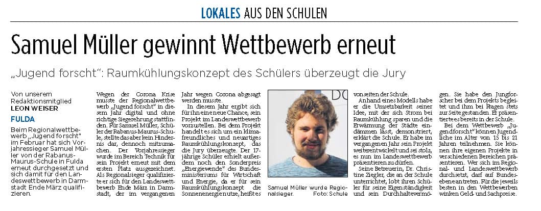 “Jugend forscht”: Raumkühlungskonzept des Schülers überzeugt die Jury