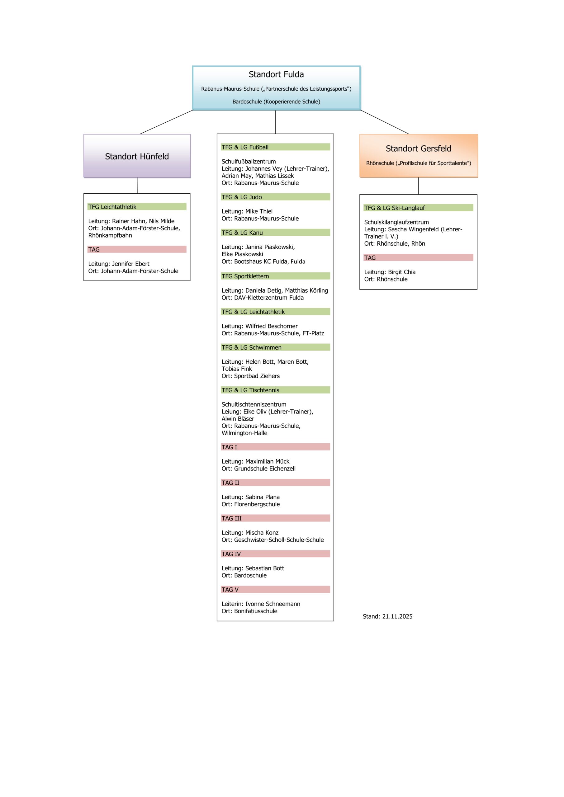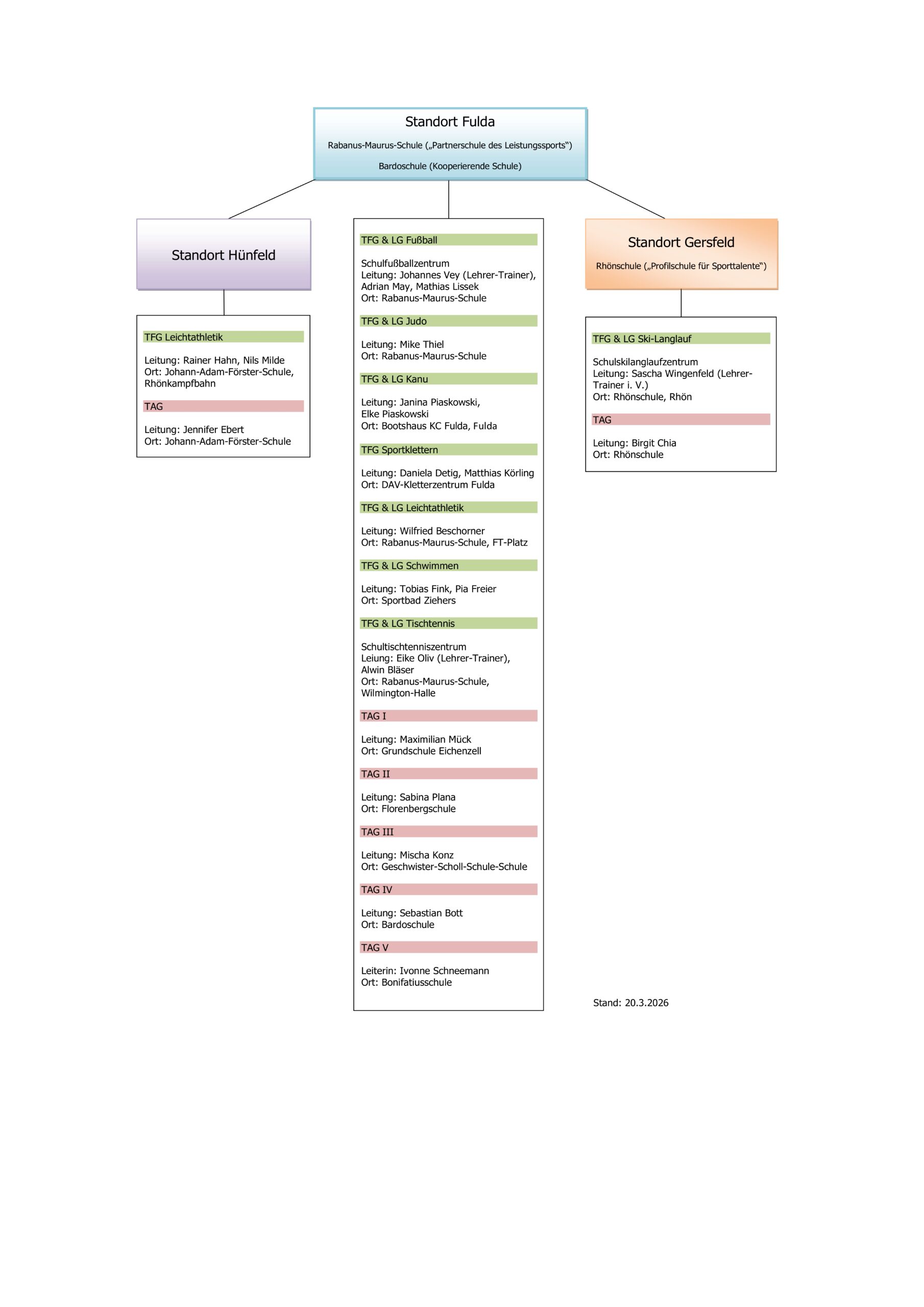 Die nebenstehende Strukturskizze gibt eine Übersicht über die aktuellen Talentaufbau-, -förder- und Leistungsgruppen des RTZ Fulda.